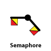 Semaphore angle, angles, arms, at a distance, at sea, clock, clock hands, degree, degrees, flag, flagging, flags, hands, railroad, railway, signal, signals, signaling, time, waving arms
